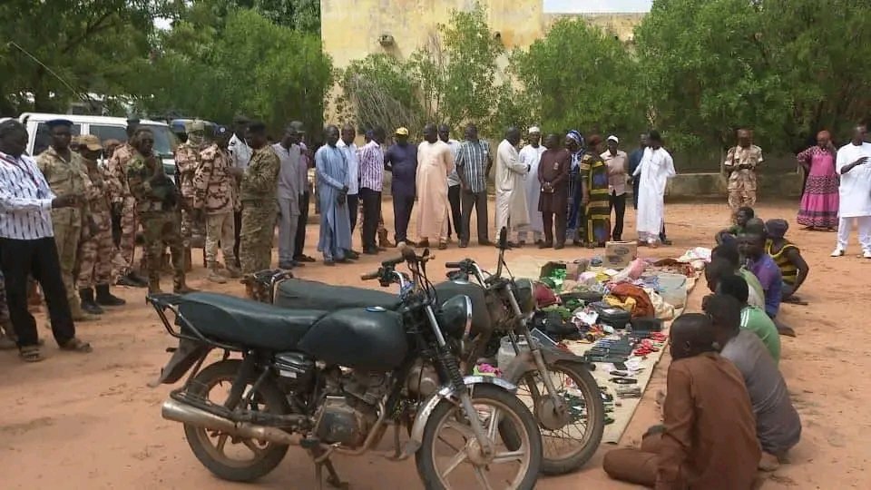 Ce jeudi 21 août 2025, à Pala, le Délégué Général du Gouvernement auprès de la province du Mayo-Kebbi Ouest, Abdelmanane Khatab, a présenté à la presse dix individus soupçonnés d’actes criminels, parmi lesquels figure une femme. Les suspects auraient été répartis en plusieurs groupes selon la nature des infractions présumées: deux seraient impliqués dans des vols de motos et du trafic de stupéfiants, trois autres dans la falsification de billets, trois dans des cambriolages de boutiques, et les deux derniers seraient complices de vols de bétail.